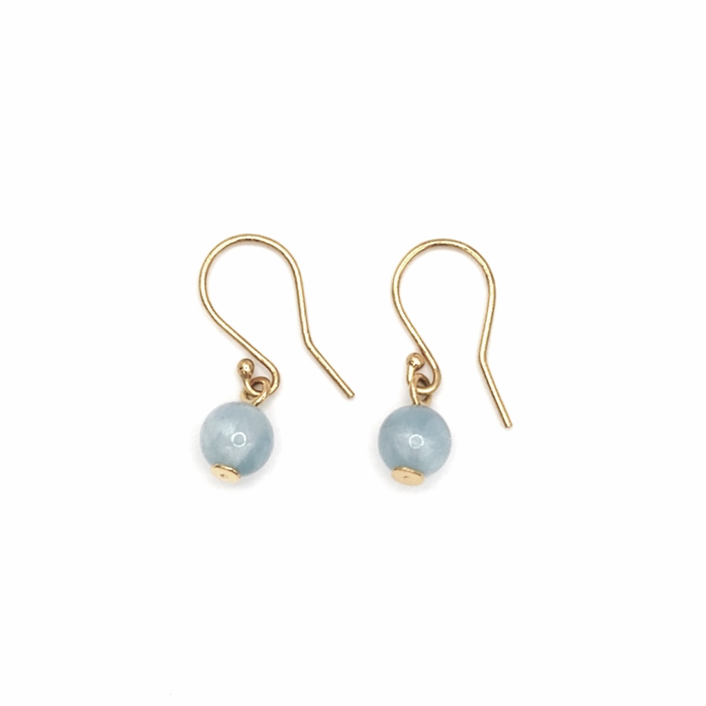 The beads are suspended from classic 9 carat gold hook fittings, which provide a warm contrast to the cool tones of the stone. With a modest total length of 23mm, these earrings are dainty and lightweight, making them perfect for everyday wear. As the birthstone for March, Aquamarine symbolises youth, health, and hope, making this pair a thoughtful gift for a spring birthday or a serene addition to your own collection.