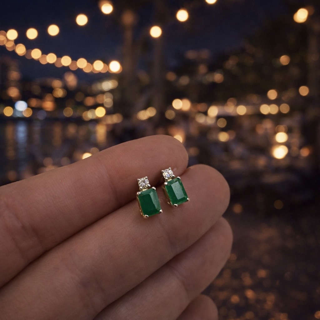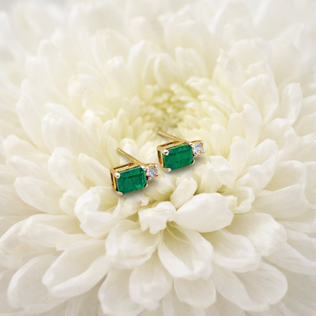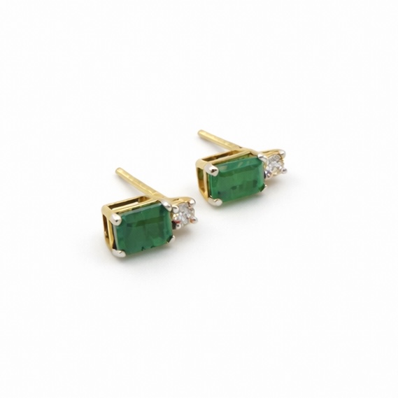 Emerald and Diamond Stud Earrings – 9ct Gold
