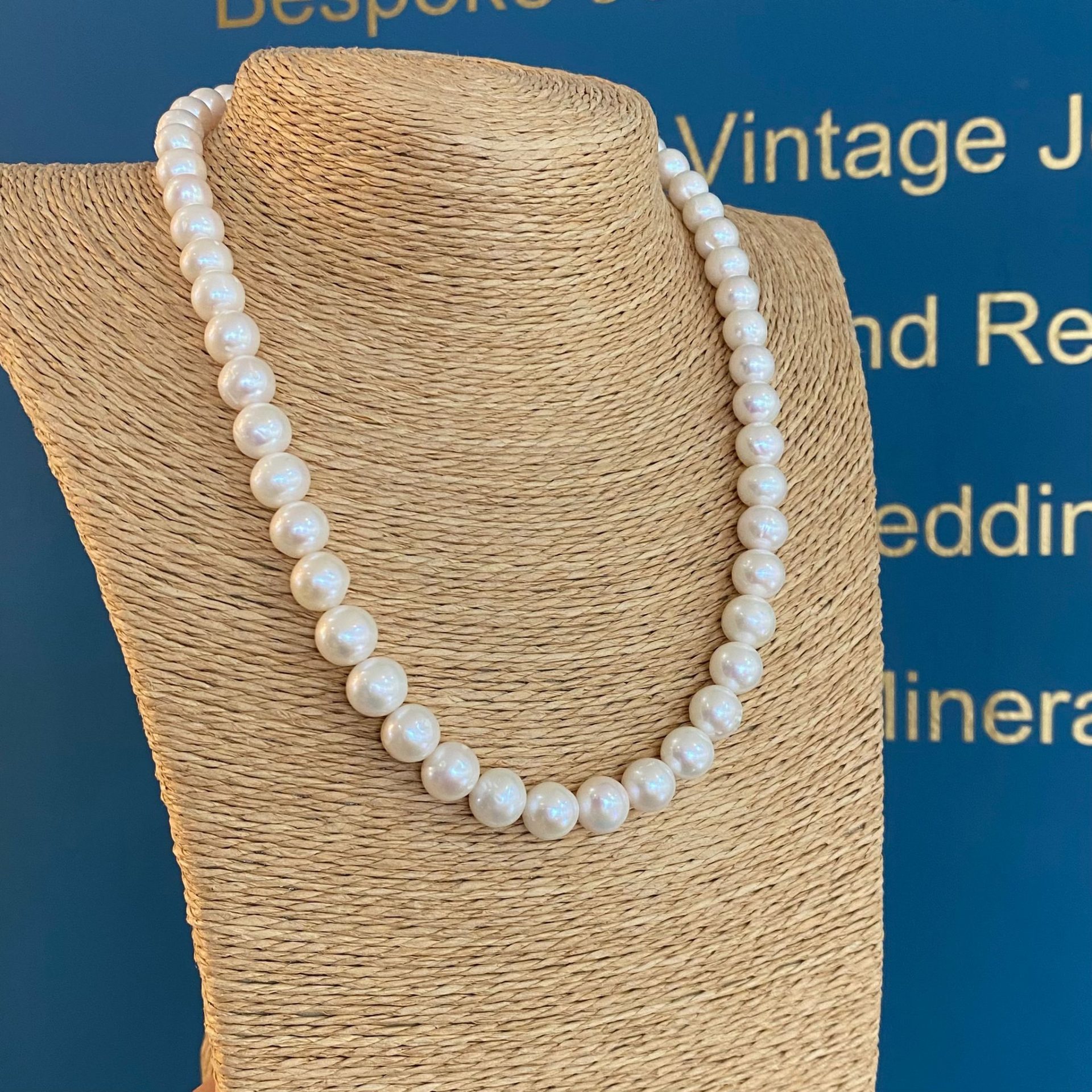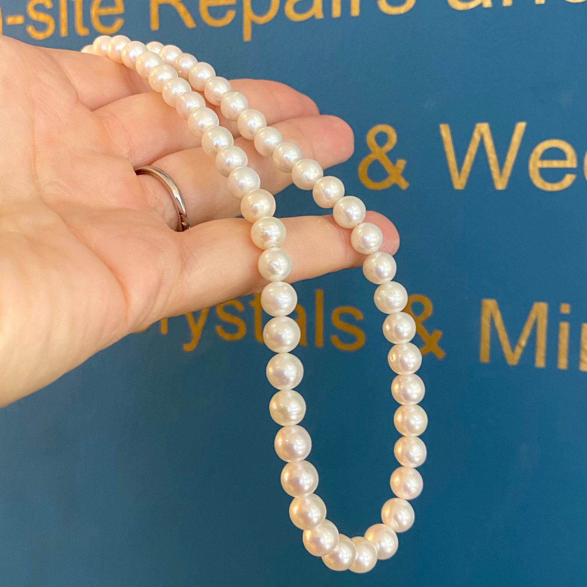 - Strung with lustrous 9mm white Freshwater Pearls.