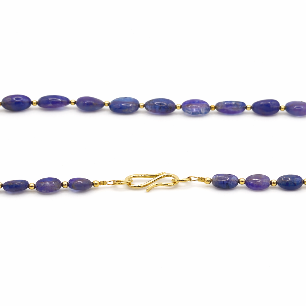 Measuring a classic 16.5 inches (42cm) in length, the necklace drapes gracefully along the collarbone, making it a sophisticated accessory for any occasion. The piece is securely fastened with a beautifully crafted, handmade 9 carat gold S clasp that adds an extra touch of artisanal elegance. Fully hallmarked for authenticity, this exceptional necklace celebrates the alluring beauty of Tanzanite, offering a luxurious and eye-catching addition to your jewellery collection.