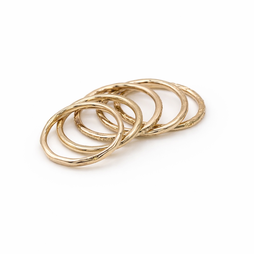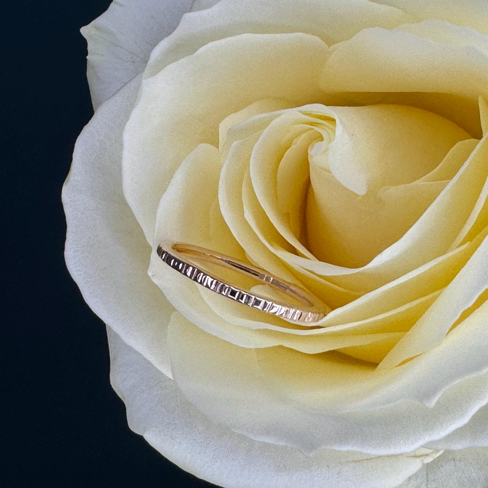 Measuring 1.6mm in width and 1.75mm in thickness, the ring offers a dainty but durable profile with a solid weight of 1.69g. Its slender design makes it fantastic as a standalone piece for a minimalist everyday look, or it can be effortlessly mixed and matched with other bands in our collection to build your own bespoke, textured stack.