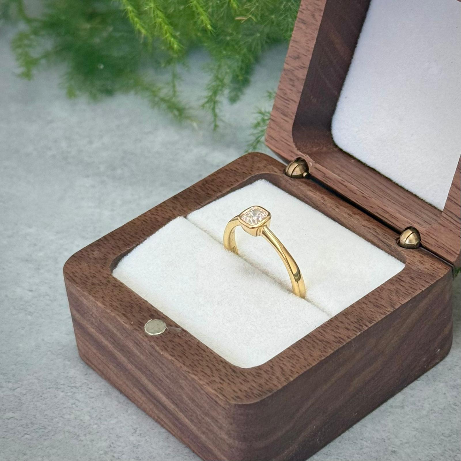 - Smooth, contemporary 18 carat yellow gold collet setting.