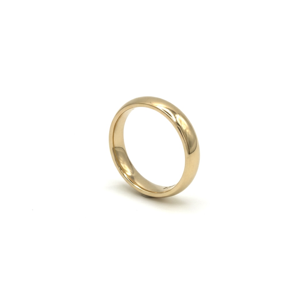 The band is expertly formed into a traditional court shape, meaning it features a gentle curve on both the inside and the outside. This specific profile is renowned for offering an exceptionally comfortable fit, making it the perfect choice for a piece you will wear for a lifetime. With a well-balanced width of 4.2mm and a sturdy 2mm thickness, the ring provides a substantial and luxurious feel on the hand, boasting a total weight of 4.3g. Fully hallmarked ‘375’ by the London Assay Office, it stands as a beautiful and lasting symbol of your commitment.